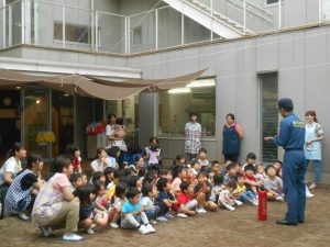 今日は、消防士さんと一緒に避難訓練をしました❗❗